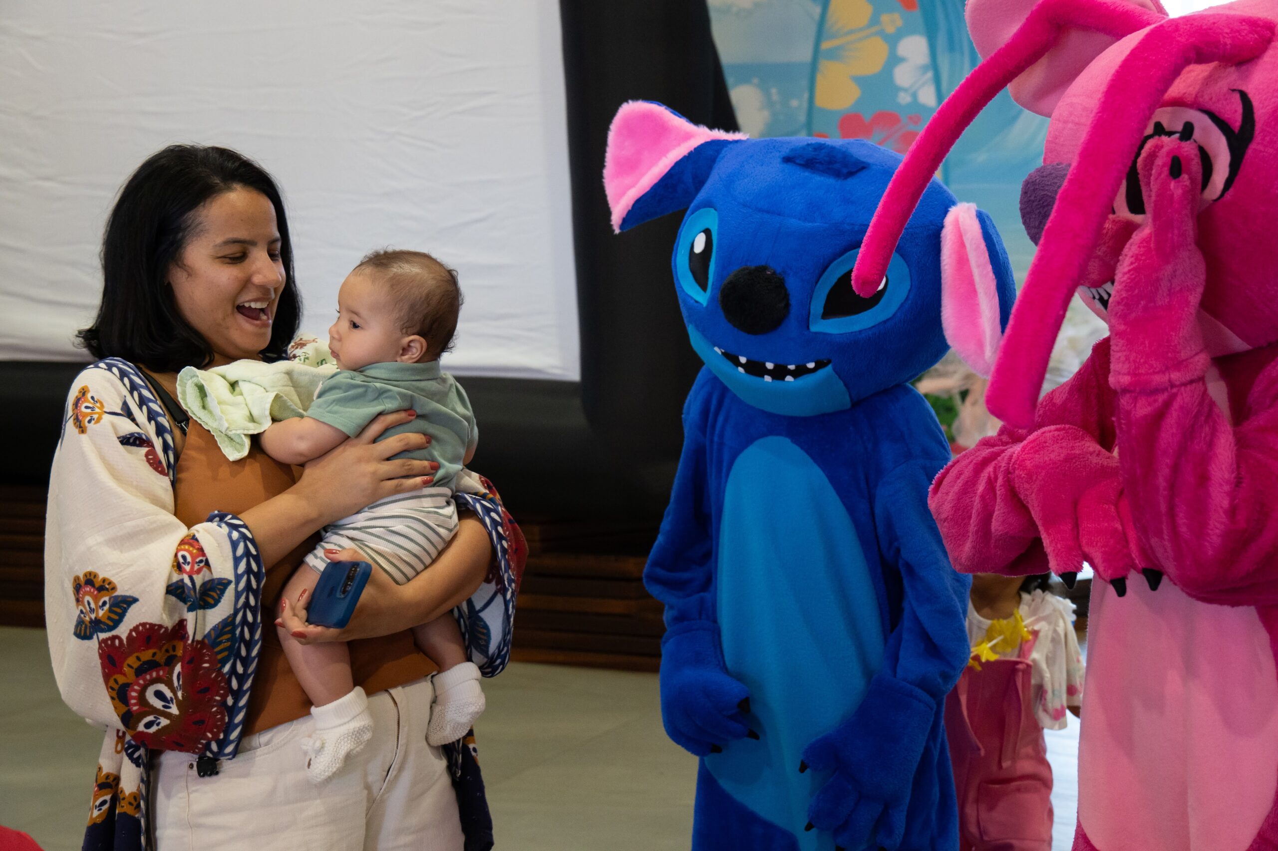 A festa contou com a presença especial da Angel e do Stitch, além de dança, pintura de rosto com a @bibikaesuaturma, oficinas criativas com o Mundo do Stitch, sessão de desenho com a @lele.da.cuca.2010, apresentação de balé com o @studio.plie, cantoria com o @paulinhoborgess e muitas comidinhas deliciosas.